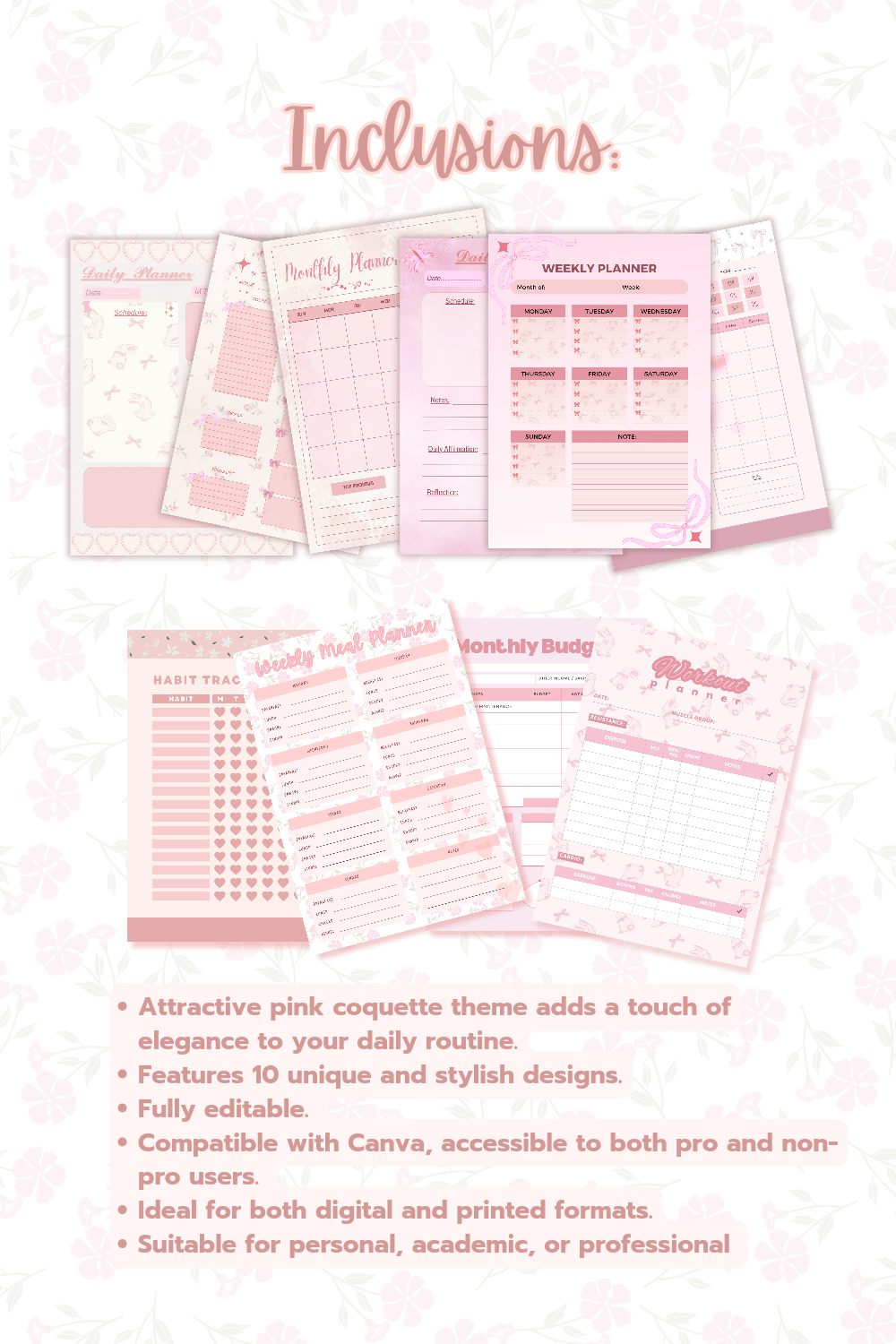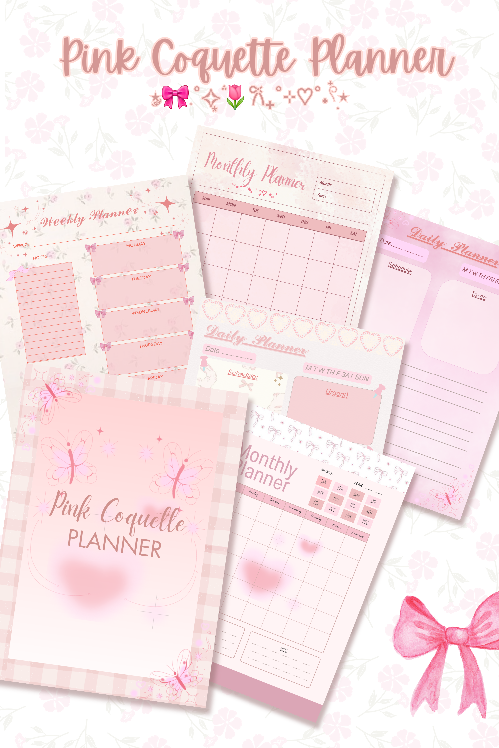 Pink Coquette Planner comes in 10 unique, stylish designs, each reflecting a chic and sophisticated aesthetic that adds a touch of elegance to your planning routine.